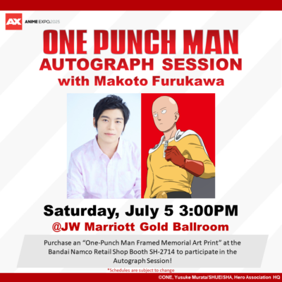 Don’t miss the chance to receive an autograph from Makoto Furukawa (voice of Saitama)!
