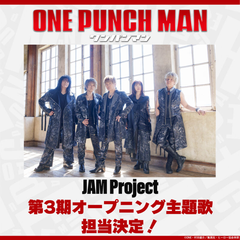 JAM Projectが『ワンパンマン』第3期オープニング主題歌に決定! 2025.7.17 おしらせ 『ワンパンマン』第3期のオープニング主題歌アーティストが決定! 担当アーティストはJAM Project! 第3期放送&続報をお楽しみに!