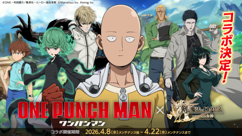 アニメ「ワンパンマン」×「剣と魔法のログレス いにしえの女神」コラボを2026/4/8(水)より開催!